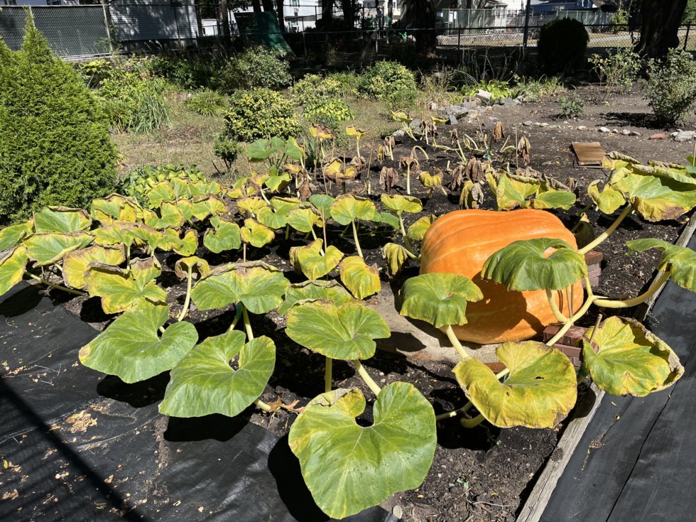 These small plants really go down quickly. Regardless of the final weight, I consider this year a success, and better than last year. I did a much better job preventing powdery mildew and kept this plant fresher for longer. Flea beetle pressure was intense. I didn't see one flea beetle on the pumpkin plant. I didn't see one cucumber beetle on the plant either. No evidence of SVB damage.