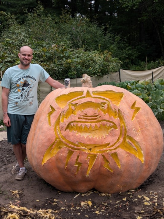 Decided to carve the 1837 UOW in the patch. I got it stood up with a new technique of digging a shallow hole in front of it, dragging it into the hole, then upright (with the aid of rebar hammered through the back to prevent slipping). It took on the form of Thunder Shark