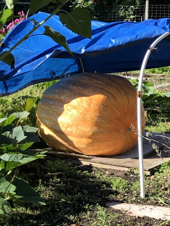 Day 90 for the 839 Sandercock pumpkin and it continues to grow slowly. This fruit gained 48 lbs in the past 10 days, so pretty consistent at 5 lbs a day for at least the past 20 days.
