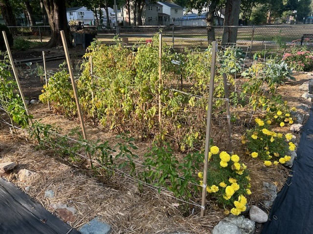 The plants are showing their age, but still producing. Even with cooler temps earlier this week we still watered at levels close to peak summer as these gardens really dry out.