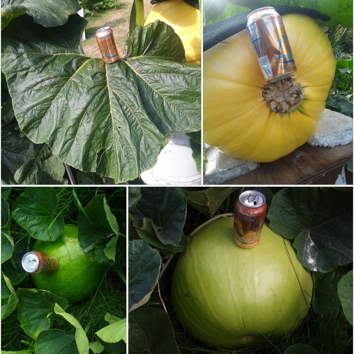 Just some pics. Top: everything about the 1912 x 1109 pumpkin/squash hybrid is huge, leaves stems, vines... its all huge. Its the kind of plant I'd like to grow a big pumpkin on! Bottom: I pollinated lots of gourds and allowed dozens of females on the smaller 2nd round gourd plants, just to see what would happen. These plants are just 25-50 sq ft. What happened is, they completely self terminated and they self-culled all their extra gourds, and each put its energy into just one gourd. This was probably the optimal outcome, I just wasnt sure if they would do this.