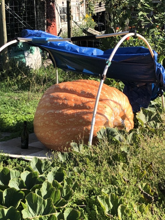 Day 97 for Ned on the 839 Sandercock plant..it has only put on 1 inch circumference this week so I think it's almost done. Harvest day coming soon as we usually lift the pumpkins into the truck a few days before Weighoff. This fruit will be day 117 when it goes to Krause Berry Farm and Estate Winery for Weighoff.