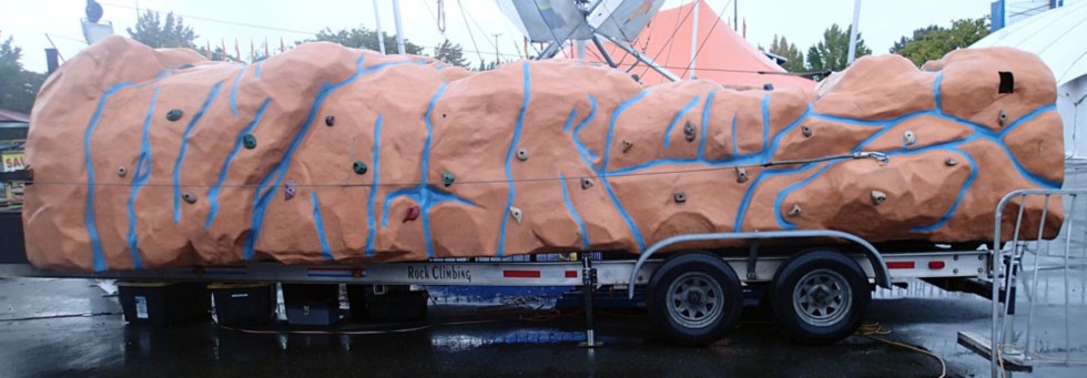 I thought this was some sort of weird medical display from a distance. I walked closer and it's actually a retractable fiberglass rock climbing wall in transport mode, lol!