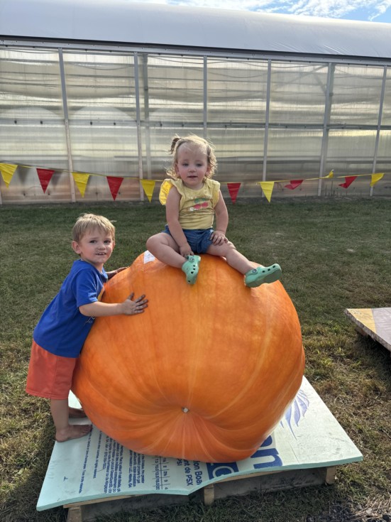 Pretty much the smallest pumpkin I've grown (besides my 2022 150 square foot entry), but certainly the highlight of my season. 582.5 Palmer (600 something with the kiddos) 2069 Stelts x 2356.7 Mendi at the Vermont weighoff. Only one I brought to scale and can't blame anything but myself. But my kids were thrilled. Hopefully have future weed pullers and growers here!