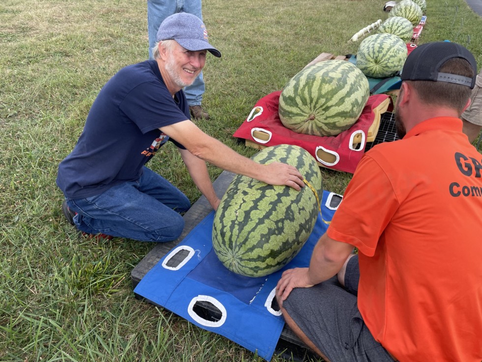 Nick and Dwight at the Roberts Family Farm weigh off running the tape on Melons.