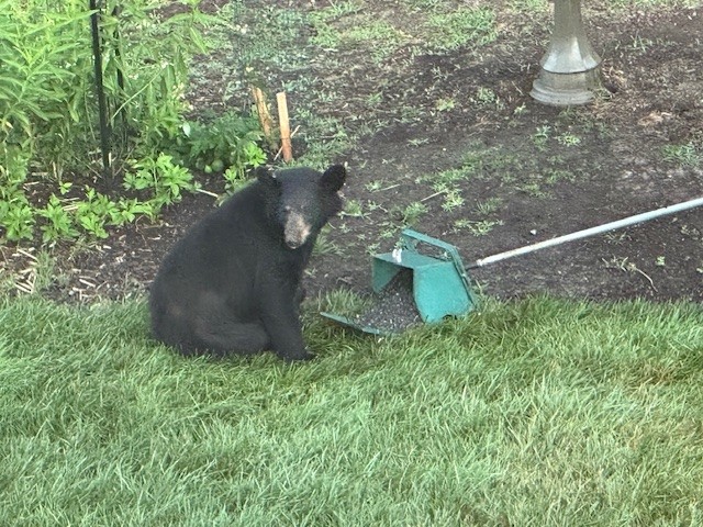 We had a visitor. I've never seen a bear here before so this was a little startling. He came back three times over the Summer. Luckily, he never messed with the pumpkin. I definitely took bear spray with me if I had to go into the patch after dark after this encounter.