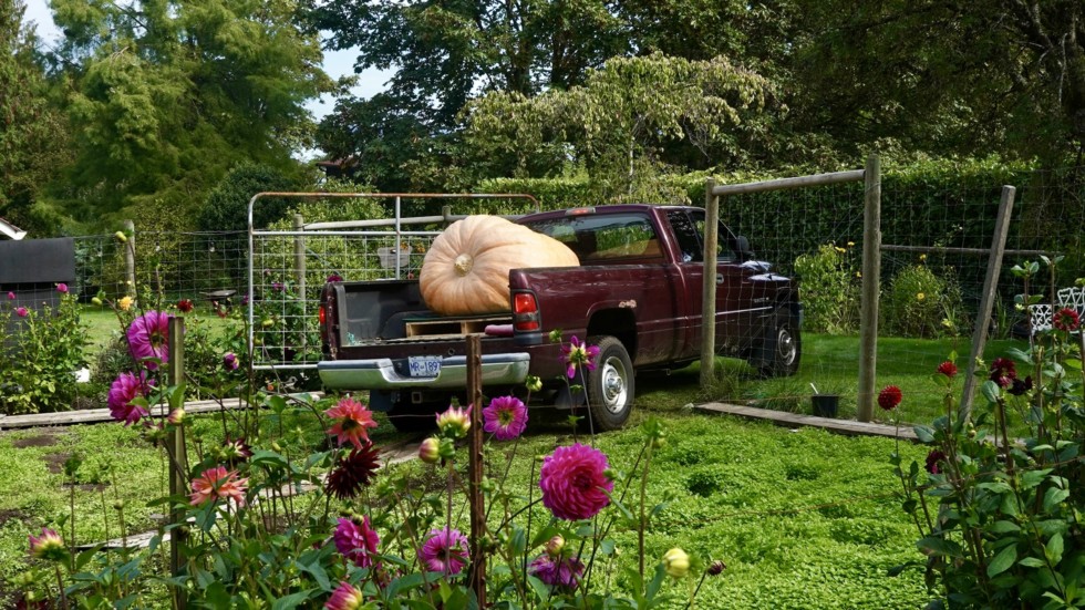 It's a tight squeeze between the gate for Barney (yup, we call the truck Barney) and out the patch we go. Oh my, look at that chickweed cover crop.