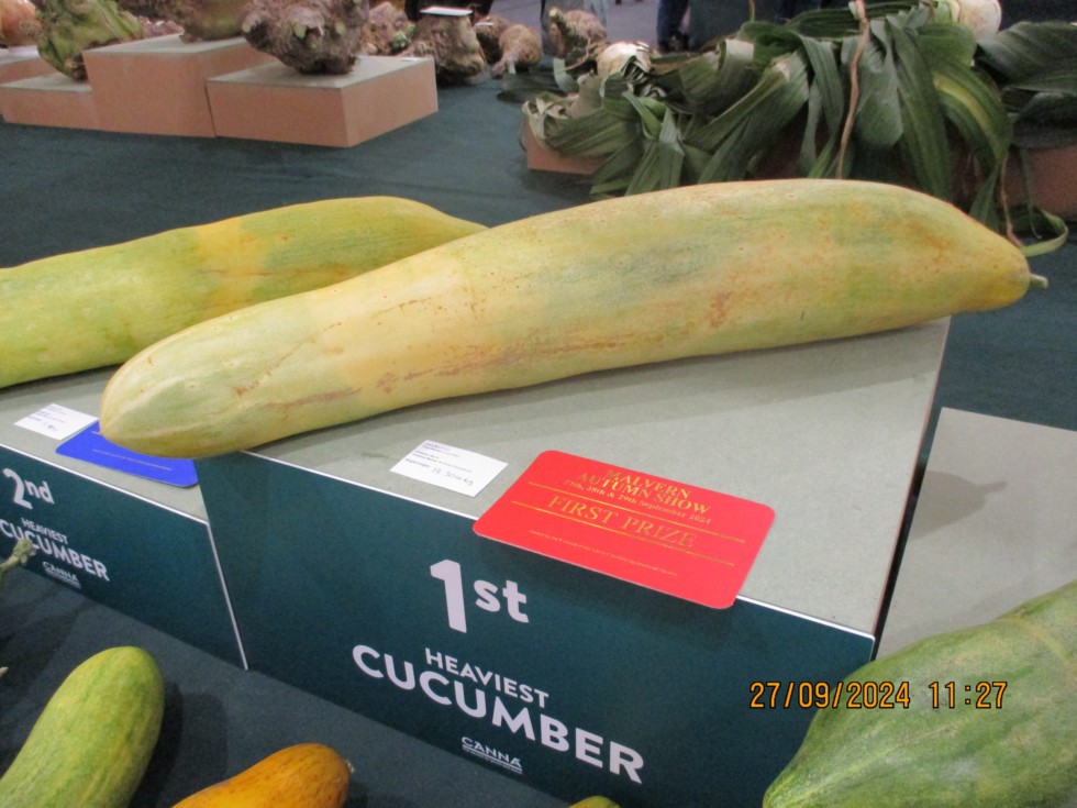 Good weekend at Malvern Show, strong competition, high number of entries. Won Heaviest Cucumber/Parsnip/Longest Leek, also to World records for Heaviest Sunflower head and Longest Leek.