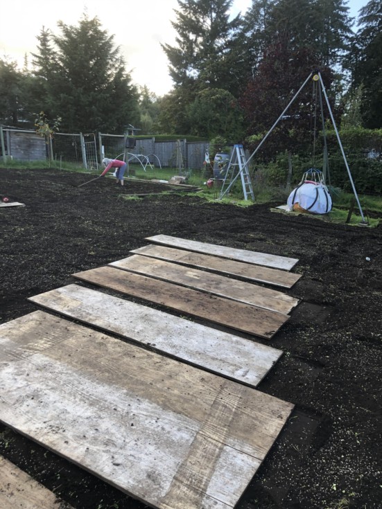 We rototilled and spread 50 lbs of fall rye seed in advance of some pretty nice weather in store for us over the next while. Andrea is raking out some footprints and tire ruts and we will then top dress with a bit more rye seed before watering it all in and hoping for great germination. When we get our cover crop planted in time (late September or very early October) it almost always results in a fantastic crop. We were late tilling and planting last year and it frosted early ruining germination. We hope to avoid that this year.
