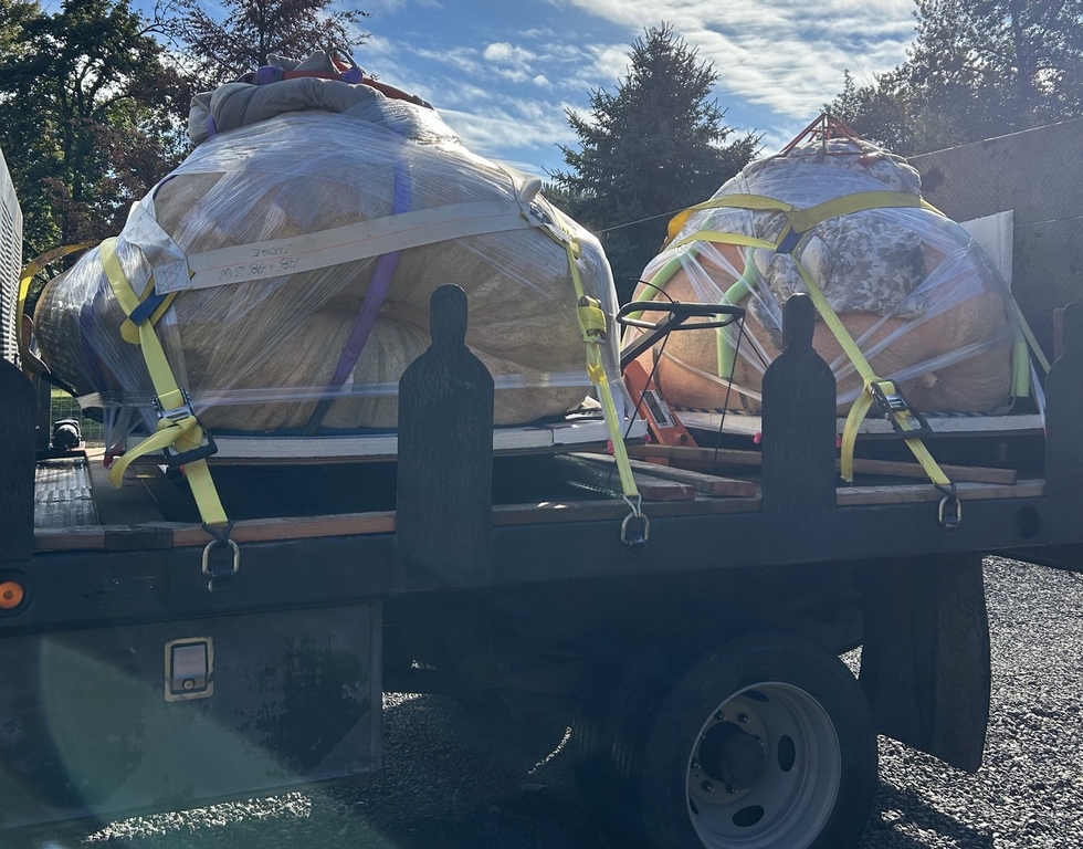 We are loaded & ready to drive! The Slunger (2501 Bernstrom) is on the front & my 1620 Pritchard fruit is in the back. I'm excited to see what they weigh!