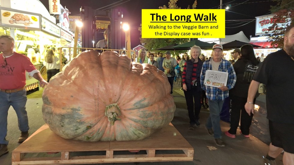 After getting the winning 2211 lb weight at Topsfield we got to talk the long walk, with the pumpkin, to the Veggie Barn.