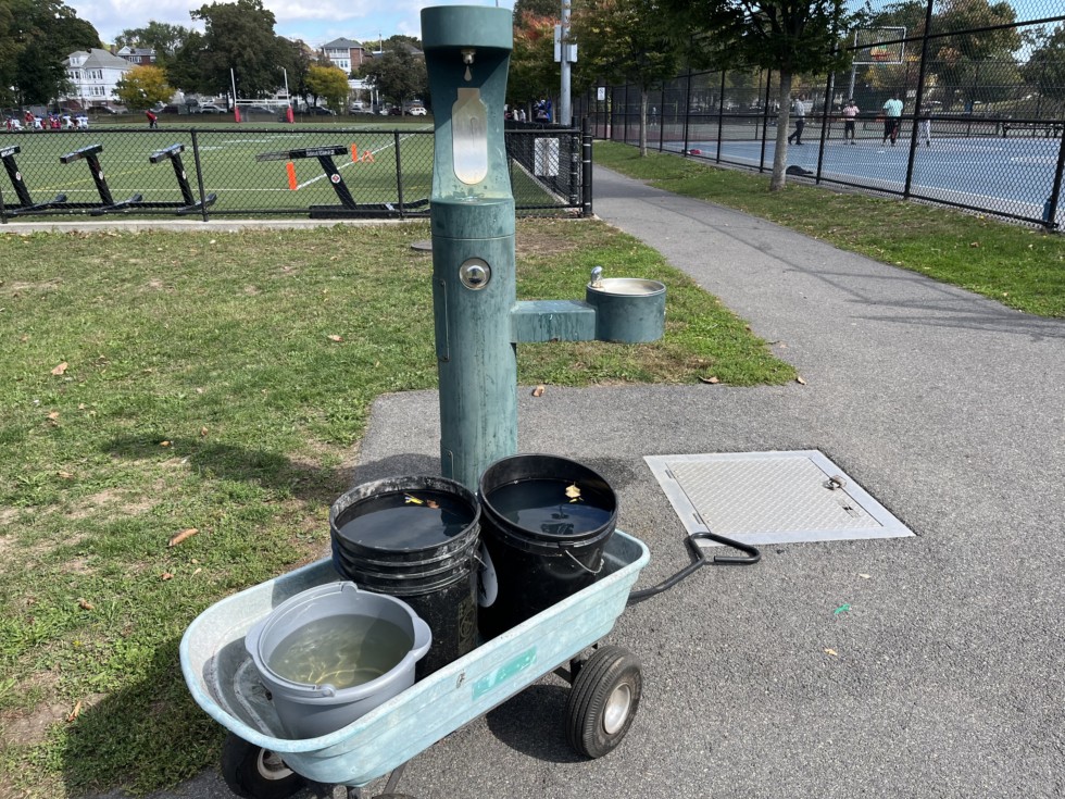 Despite the garden being open until 10/31 Boston Parks yet again turned the water off. Yet, just a few hundred feet away there is water for the athletic fields. I will try to get it turned back on. In the meantime we will rely on hauling water and rainfall. Good thing we have .25-.50 inches of rainfall coming tomorrow.