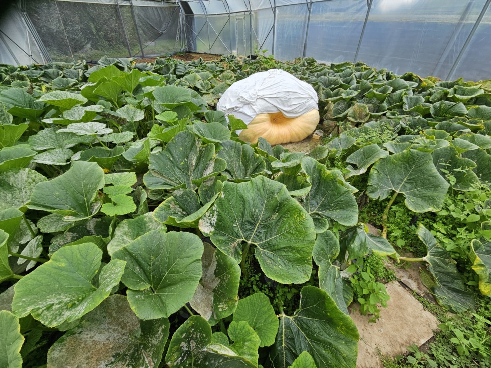 Look at the Gienger plant. Still in good conditions for 7th october. Pumpkin is 112 days, still growing and has a very good shape. Cross is 2560 Gienger X 2365 Wolf
