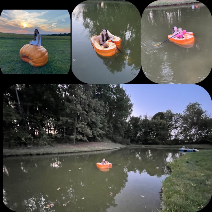 It ended up at 1305 pounds. It was pollinated by my 1109 which turned out fire red in color and 21% heavy to chart. I cut it in half to get a good look at the thickness of the pumpkin, then my daughters began to beg me to put it in the lake so they could float on it. I didn't think it would float because it was cut in half, not hollowed out, but they were persistent and of course I gave in�. To my surprise, it actually floated and they paddled around the lake for hours till dark. It was one of the greatest days of my life to see their little smiles.