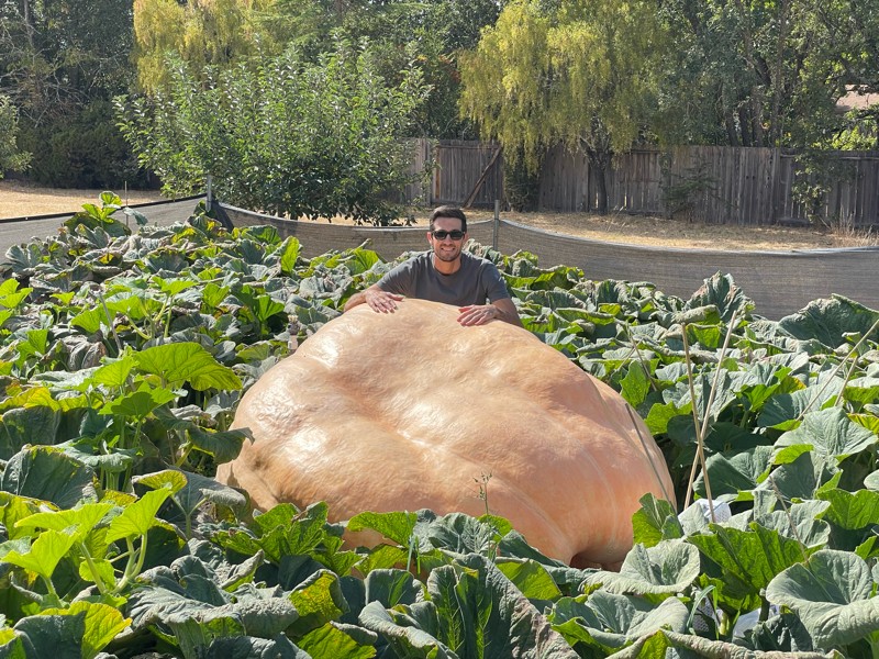 Still going strong. Skin is smooth and everything that I can see looks healthy. Heck of a pumpkin. 6 days from now she gets weighed at Half Moon Bay.