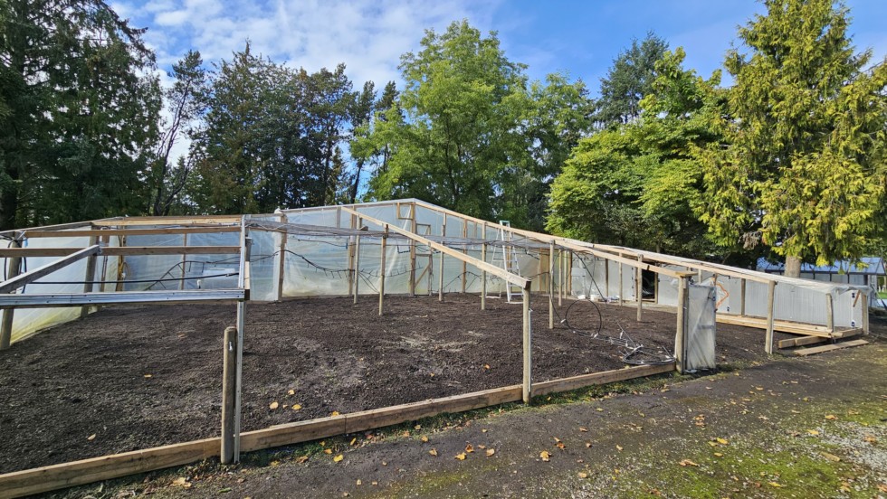 The patch is cleaned out and poly removed. The ceiling of the greenhouse has been raised because I made it too low on the short side. Now my poor back won't have to bend over so much. Rye seeds will be sown today. ReMay will be applied over the seeds. Now all there is left to do is wait!! But impatient for next year to start.