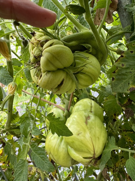 Another view of tomato number two on the X.XX Greene. Wish it had of come along two months ago. Oh well, I'm going to grow number one and two out and see where they end up. Again, this plant has thrown 15 megablossoms this season thus far; I will definitely be growing this seed next year.