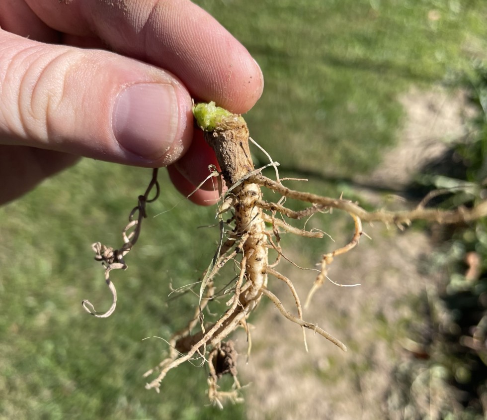 My state record melon was grown on a traditional plant (not grafted). I grew it on naked soil (no fabric) that treated with a pre-emergent herbicide. I thought it was super neat to see all the tap roots the plant had shot down at the nodes. Here is an example of one found 13' out on the left finger vine. Darn impressive but dangerous as root issues/disease are likely the biggest issue a grower can face. I have been told that is one of the reasons why grafting is such common place for competition and commercial melon patches. I look forward to giving them another spot in my grow in 2025.
