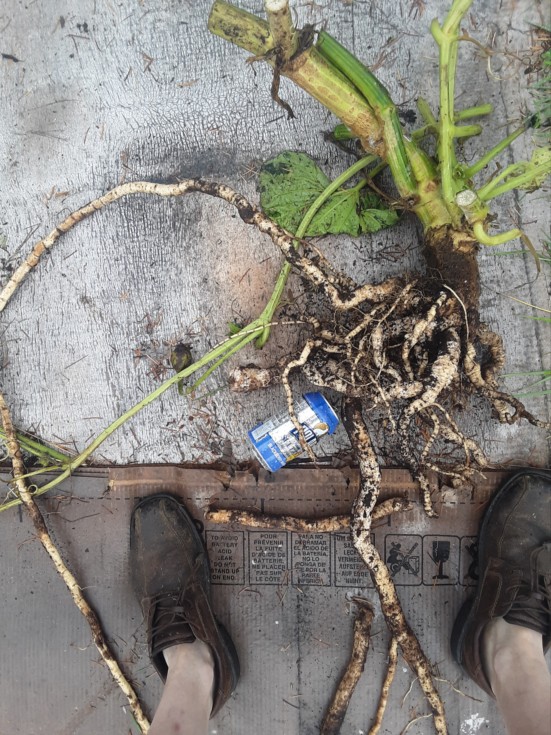 Bushel gourd roots were huge and extended to the patch boundary. Because of this "full use" of the available rootzone, I think growing only one plant would be appropriate.