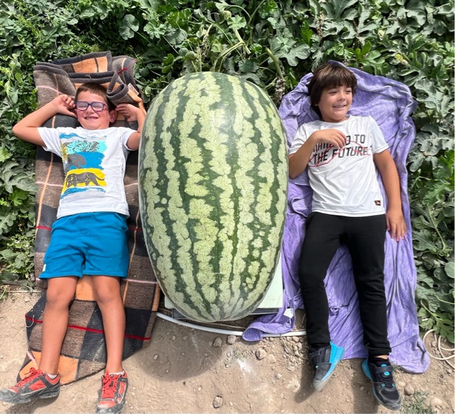The watermelon did not reach the weighing, cracks came out in the flower on dap 56, and I endured it until dap 65. This watermelon grew like a whale. The goal was to get the watermelon of more than 220 pounds, and in the end it got 237.5 pounds dap 65 (+8%) I could not take it to the weigh off, but even so, it is the largest watermelon that has been weighed in Spain unofficially. I am very happy, and in 2025 I will grow 2 or 4 watermelons, with the soil better prepared.