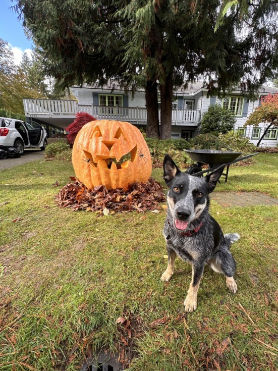 Tova isn't very camera shy, here she is with the pumpkin we carved today.