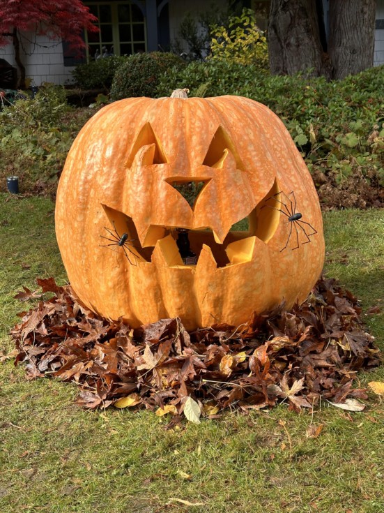 Waiting for the trick or treating, I'll get our friends to send me a photo of it with the lantern lit up inside.