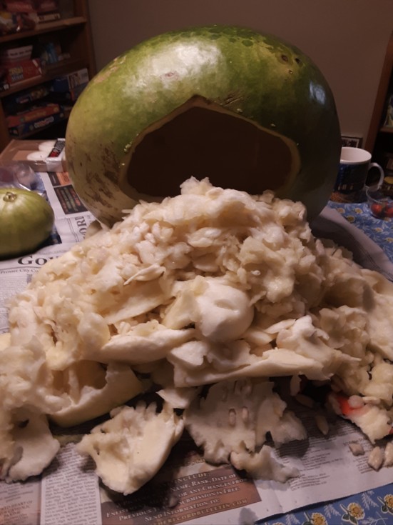 A huge amount of guts... I dont think gourd carving will catch on.