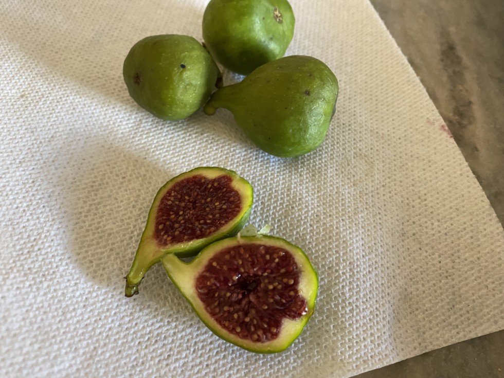 First year with any figs to harvest. These are the variety Italian 258. They are sweet and good. They are only about the size of a golf ball. I will have to dig the tree and move it into the cold cellar to get it away from freezing temperatures this winter.