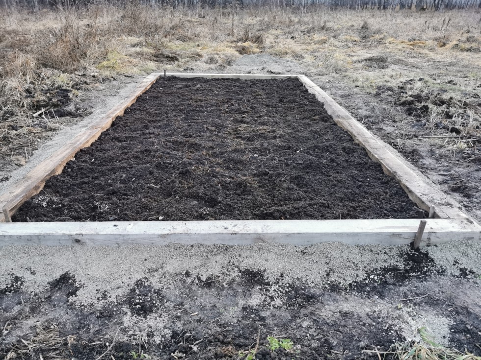 While winter temporarily receded, I prepared the foundation for the future greenhouse. I also prepared the ground. He added humus and dolomite flour. I plan to allocate half of the greenhouse for a giant watermelon.