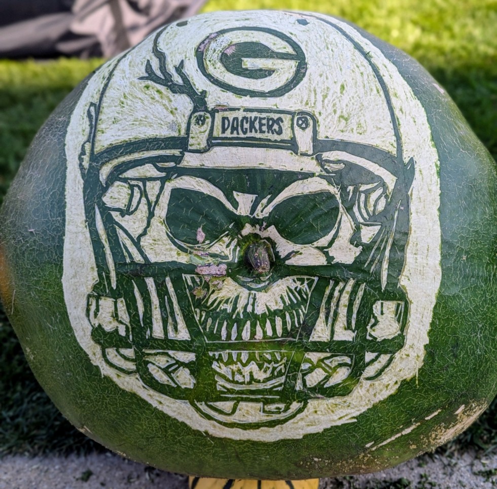 I love carving bushel gourds. This guy took me almost 3 hours, one scrape at a time