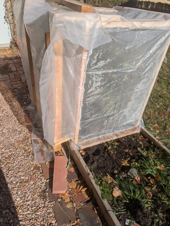 Yay SUN! I bet the tomato plant is very happy about it. It's nice a warm in the makeshift green house.