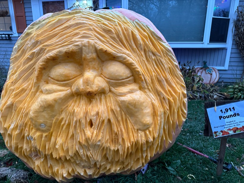 Carved over the nasty mold that covered the first carving and added more hair and a beard for the old man winter look. Turned out good for being so squishy