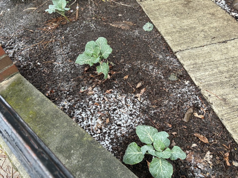 The winter garden of six collards is doing well. Very low maintenance, no weeding, no bugs, etc. The collards are growing at a pretty good pace considering the time of year.