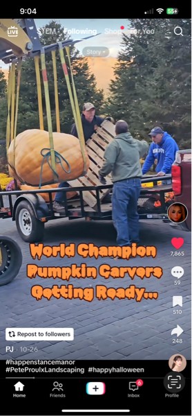 Val did try and ease my pain and said hey I found a video of your pumpkins with Dave Stelts, Andy Wolf and you unloading them at the end of the season pumpkin event. It is on Tik Tok! Ok she was right.. when do I ever get in same picture with a couple of world class growers like those two.