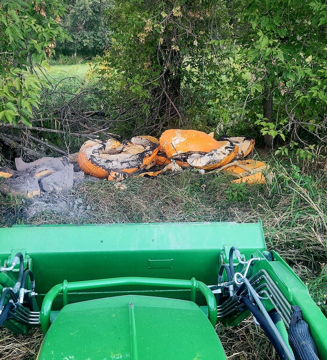The boneyard is stacking up. The 2749 had stopped growing and had a huge growth crack under the fruit so off to the wood chipper as it goes...1121 is in there too....uugh