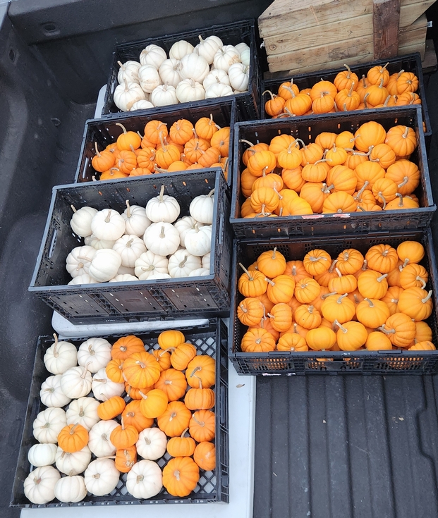Harvested and cleaned up the desk pumpkins. Have a local play farm looking to buy them all of us so that works out.