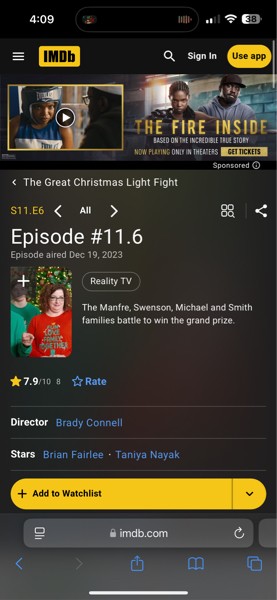 You can watch my episode of The Great Christmas Light Fight episode season 11, episode 6 on Disney +