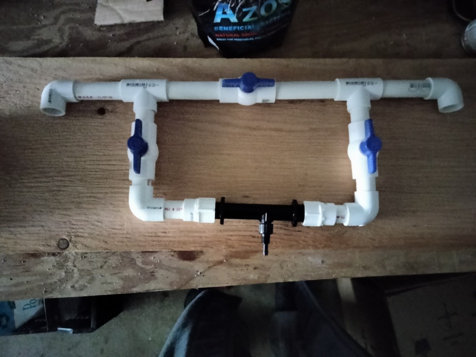 Put together this Venturi injector manifold. A little different than the Dosatrons we run in the greenhouse so now I need to do the legwork of figuring out flow rate, pull rate, and ppm dosing.