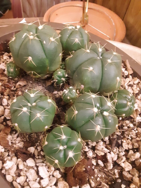 These are my 30 year old cactuses. Well one is 30+ years old the rest are 20-25. They reproduce. There used to be just one... the original one still there and it still looks youthful enough... and its becoming a grandparent now, evidently. These things make me happy and they are no work at all. They even kinda look like plump little squashes.