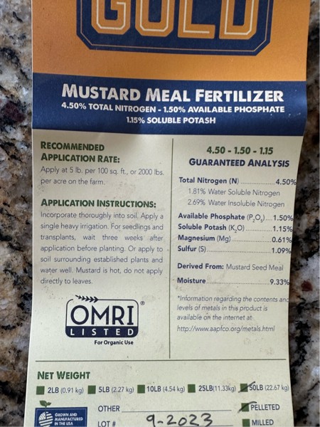 For those of you curious about the mustard meal, it is both a biological fungicide as well as a fertilizer. I've added quite a bit of it for a small patch, and will have to reconcile the nutrients in the spring. I like the fact that it's got some sulfur in it because it seems like I am always chasing that element.
