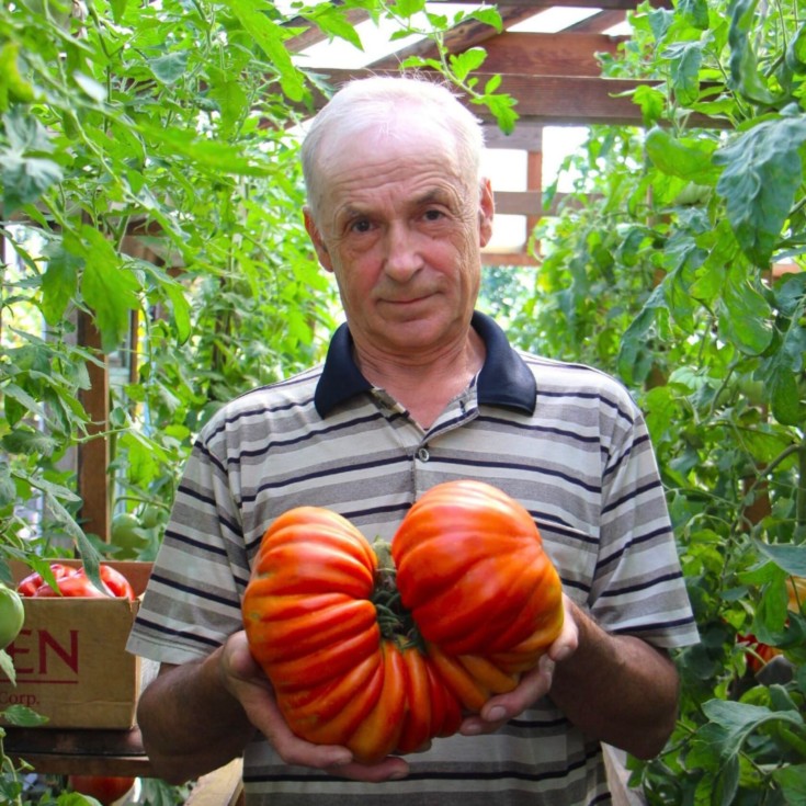 The giant tomato weighing 2.735 kg (6.01lbs) was grown by Alexander Terekhov from Minusinsk (Russia) 2024. At the annual competition "Day of Minusinsk Tomato" it was largest tomato in Russia. According to the rules of the competition, there must be at least 5 tomatoes on one plant. The heaviest of them weighed 2.73 kg Every year in Minusinsk there is a competition for the heaviest tomato. The main prize is a car. The tomato variety from which the Russian record grew is "Gigante Farina"