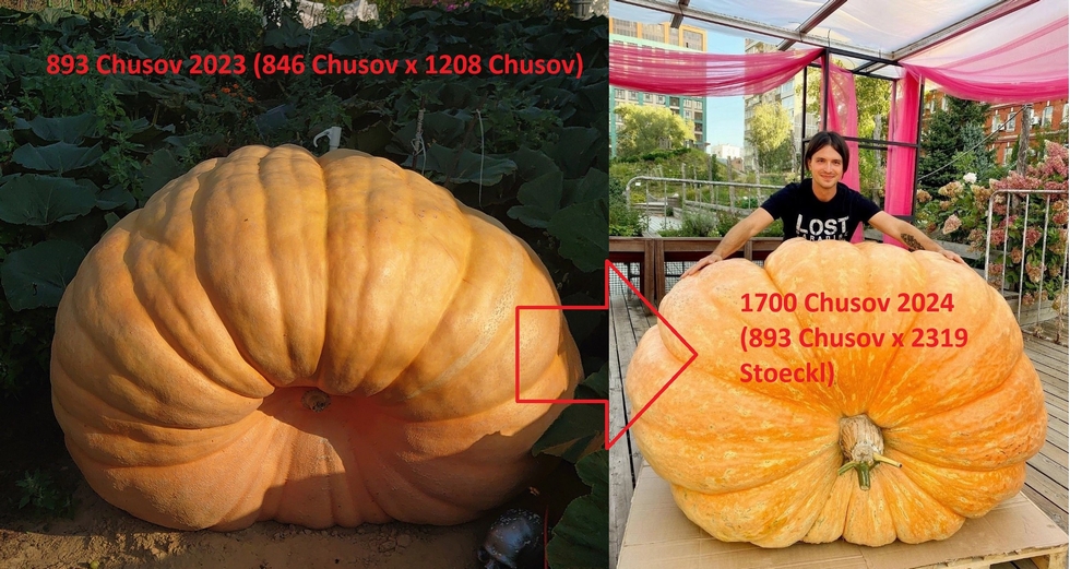 As you can see, my 893 pumpkin grew into my 1700 pumpkin. I am ready to send several sets to those people who definitely want to plant pumpkin seeds 893. Just write your comment under this entry and I will be able to send them to the first 4. I can also put some seeds from my pumpkins this year in these kits. But only 4 sets. I tried to send seeds to the USA and European countries, everything worked out. I will send the seeds for free.