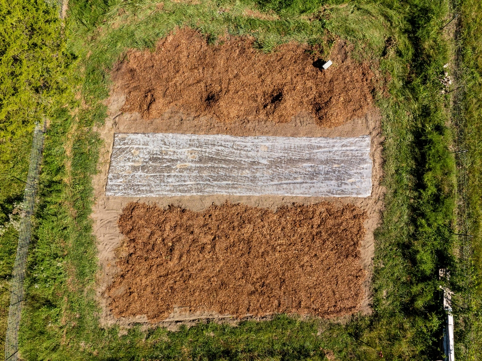 2024. Soil prep continued into the fall with many loads of mulched leaves from the lawn-vac added to the patch. Leaf-mulch was about 6 inches deep. This pic was taken before the mulch was worked into the soil with multiple passes on the tiller. More HP on the tiller would have made this a lot easier. The central area was the last to have the solarization cover removed, and leaves were added here later as well.