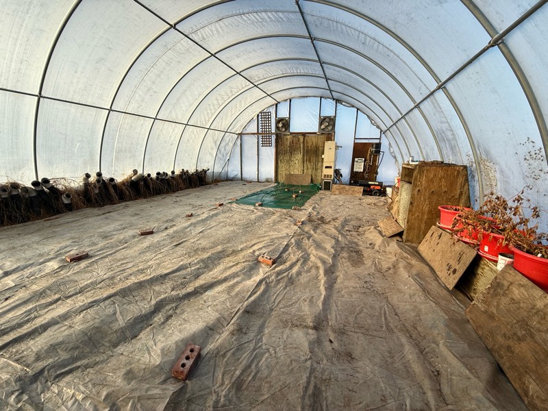 I put the clear (ish) poly down to help warm the soil. I would have put down the IRT film everywhere but I can't anchor it in the frozen soil.