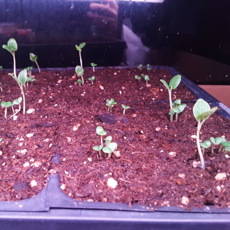 Excellent germination of the basil, 50 % germination of the hollyhock... I hate having empty dud cells in a seed tray, its too inefficient. But by combining a high value low germ. seed with a low value high germ. rate seed I can get a full tray of plants but not waste effort or value.