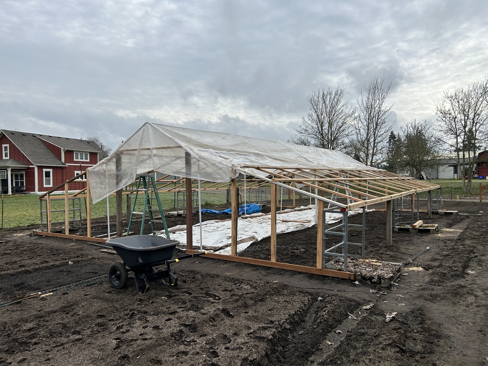 Yesterday I installed plastic on the center of the greenhouse. And I did it all by myself!