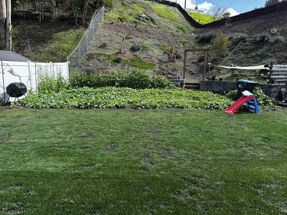 Getting closer to the final cut and till of my off season cover crops. We've had a bit of rain lately and that is causing the invasive weeds to explode on the hill side.