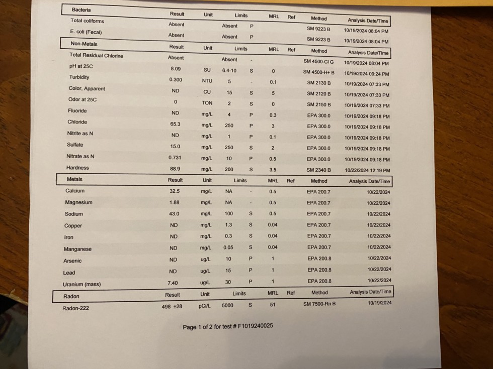 Here is a photo of the water test from our well