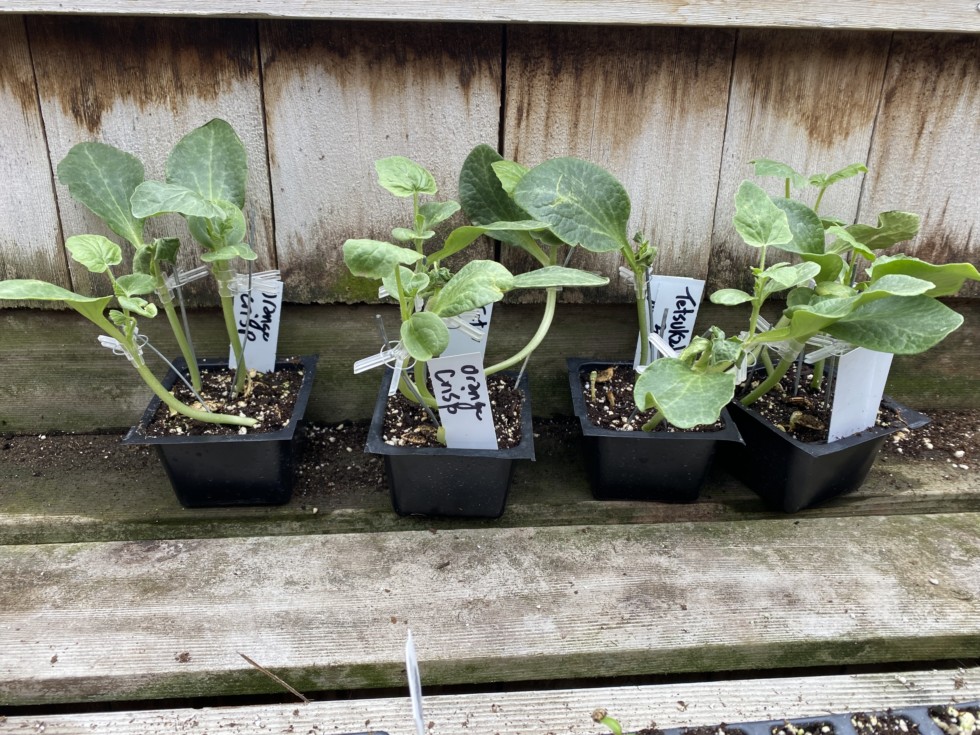 Grafting doesn't have to be pretty. You can see how ugly these grafts are! The most important factor with grafting is good contact of the vascular tissue, then comes high humidity and warmth for proper healing. I decided to do the one cotyledon graft on these because the squash rootstock and the watermelons were a pretty good match in terms of hypocotyl diameter. After spending almost a week in the healing chamber they are ready to get potted up and put in the greenhouse. You can see some have failed to take. But I wanted to keep it real with you and show you that too! Sometimes I get 100 percent other times... I don't. Not exactly sure what happened, the more you grafting yoo do, the better feel you get for it. I will be doing my giant watermelons this week and the seedlings and cotyledons look a lot better, So I feel really confident after this test run. Seedless are the hardest to do in my experience. The giant watermelon seeds were germinated at a cooler temperature (80degrees) and they all have nicely shaped cotyledon leaves. For some reason my cotyledon leaves come out a little messed up when I germinate them too hot. (in the 90's). Seedless will not tolerate cooler germination temps. Even at 80 degrees I may have had some issues. At 90 I got 100 Percent germ.