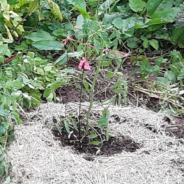 Barely visible, prior to being grouchy at me and wilting for about a week. But you can see a little bit of pampering there. Around the plant, that might be... ?